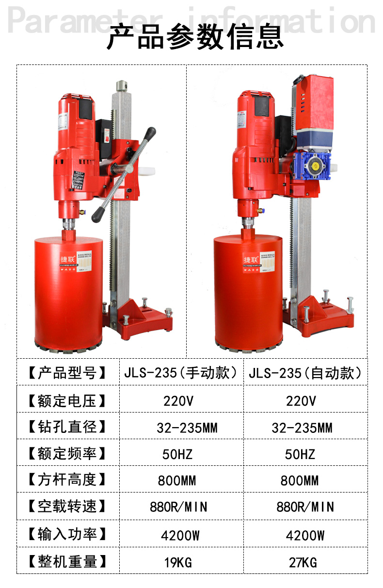 J9集团官方网站水钻机金刚石钻孔机工程钻机空调孔烟机孔管道孔消防JLS-235
